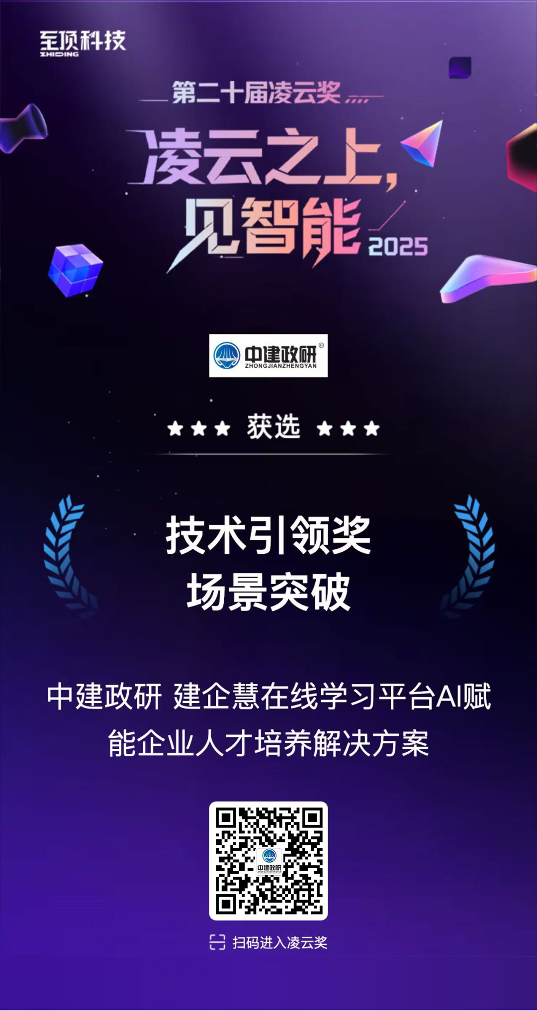 2025年12月30日,在至顶科技举办的凌云之上,见智能2025活动中,中建政研集团旗下的建企慧在线学习平台凭借在AI赋能企业人才培养领域的卓越表现,荣获技术引领·场景突破奖项这一荣誉不仅标志着市场与行业对中建政研集团在AI技术应用与人才培养场景创新方面的高度认可,也彰显了建企慧在推动企业数字化转型与智能化升级中的领先地位