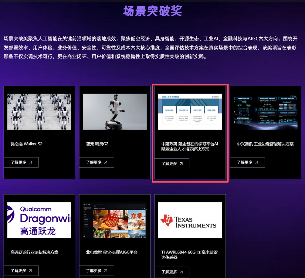 此次荣获凌云奖技术引领·场景突破奖项,对中建政研集团而言,既是对过去成绩的肯定,也是对未来发展的激励中建政研集团将继续深耕AI技术在企业培训领域的应用,不断优化建企慧平台的功能与服务,为企业提供更加智能高效的人才培养解决方案,推动企业的数字化转型与智能化升级