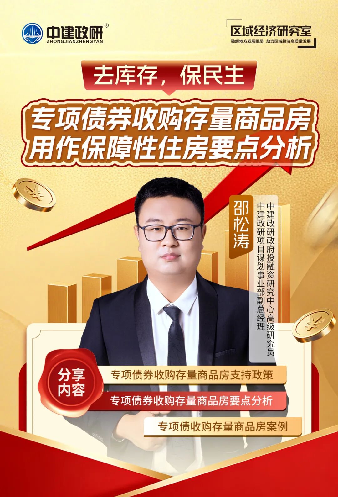 编者按在房地产市场调整与民生保障需求提升的双重背景下,专项债券收购存量商品房用作保障性住房成为一项重要举措这一模式既有助于化解商品房库存压力,又能快速补充保障性住房房源,实现去库存与保民生的双重目标对此,2025年9月18日,中建政研项目谋划事业部副总经理中建政研政府投融资研究中心高级研究员邵松涛以去库存保民生:专项债券收购存量商品房用作保障性住房要点分析为题进行了分享