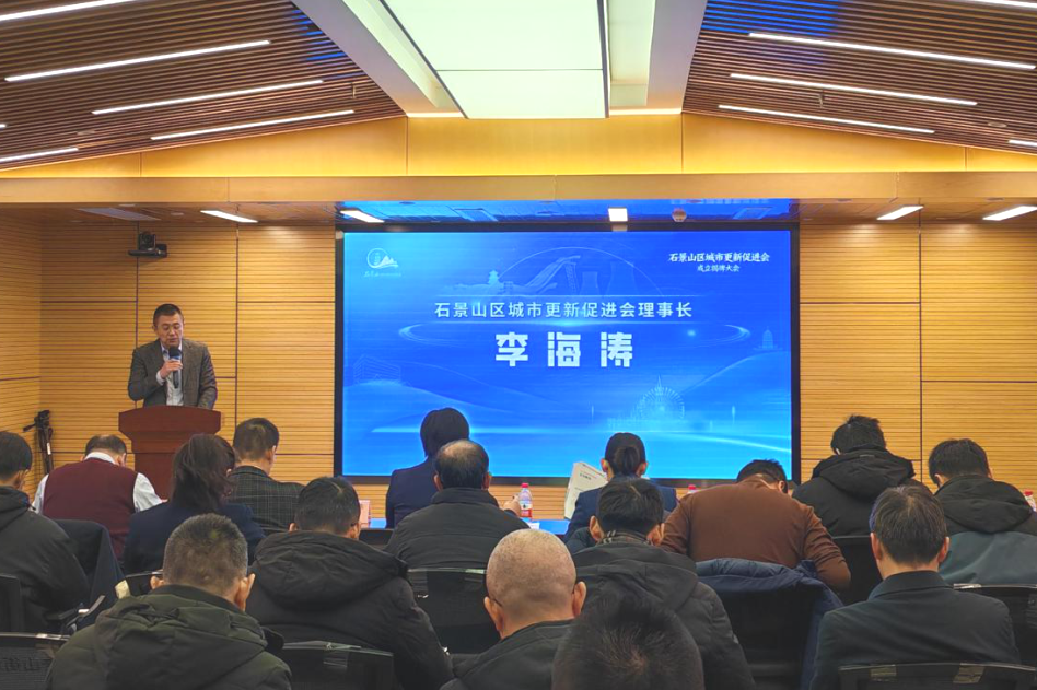 揭牌仪式后,区城市更新促进会首任理事长实兴集团总经理李海涛发表讲话李海涛理事长表示,区城市更新促进会将立足石景山独特的山水格局与工业遗存优势,全力打造集智囊团连接器传播者助推器等四大功能的合作平台,在政策研究资源整合经验推广协同创新方面重点发力,打造具有京西影响力的城市更新盛会