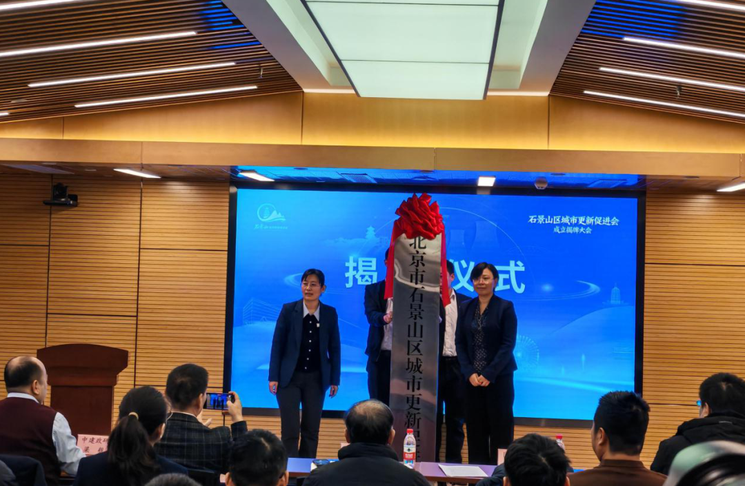在全场嘉宾的共同见证下,闫晓辉主任与石景山区国资委党委副书记副主任李晨共同为区城市更新促进会揭牌,标志着石景山区城市更新促进会正式投入运营,一个凝聚共识协同发力共谋发展的城市更新平台就此诞生