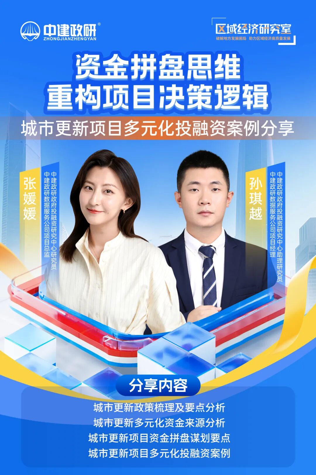 编者按城市更新作为扩大内需的重要抓手,其核心痛点在于资金筹措与可持续运营对此,2025年10月16日,中建政研数据服务公司项目总监中建政研政府投融资研究中心研究员张媛媛,以及中建政研数据服务公司项目经理中建政研政府投融资研究中心助理研究员孙琪越为我们带来资金拼盘思维重构项目决策逻辑-城市更新项目多元化投融资的主题分享