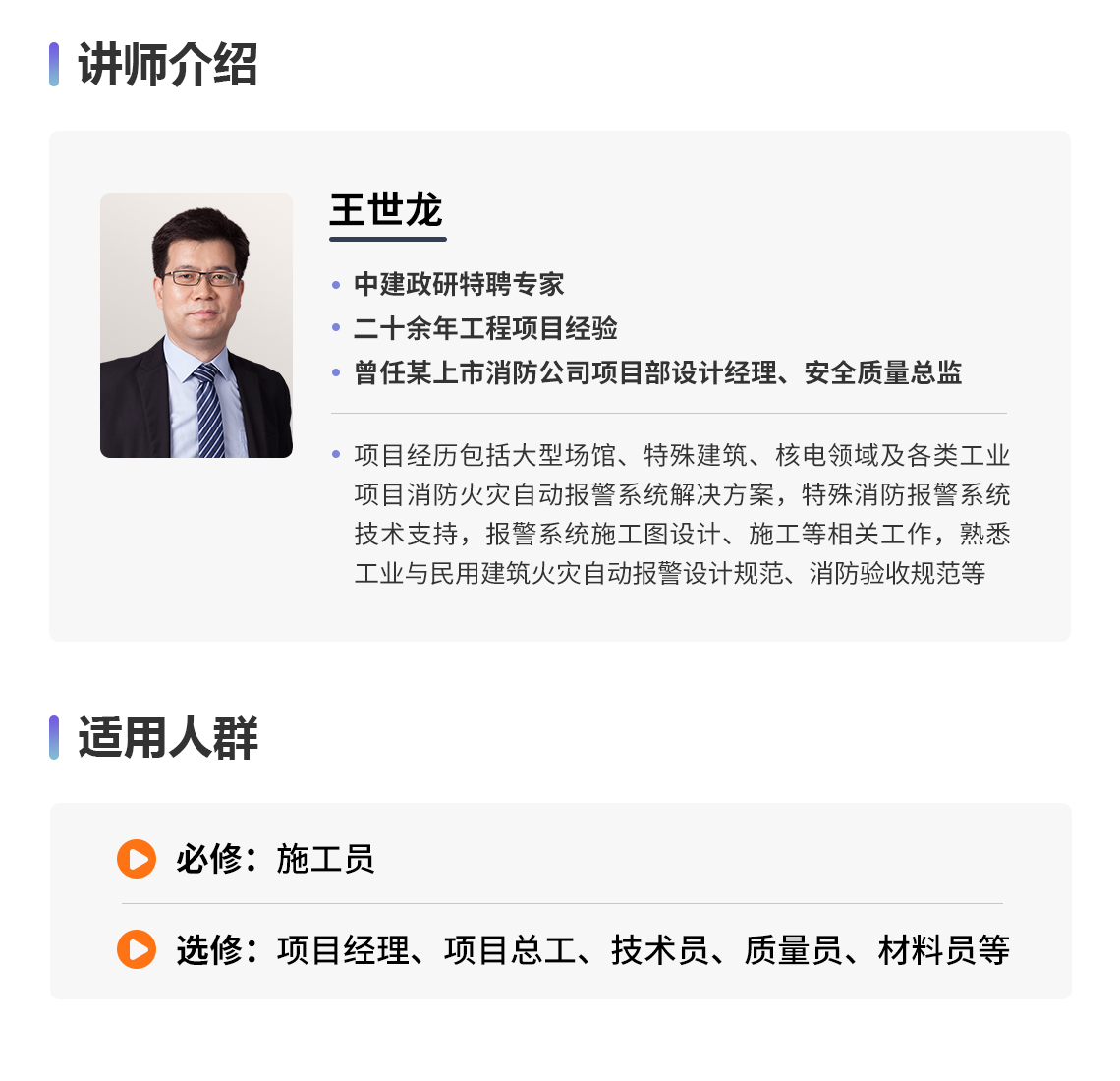 选修人群:项目经理、项目总工、技术员、质量员、材料员等