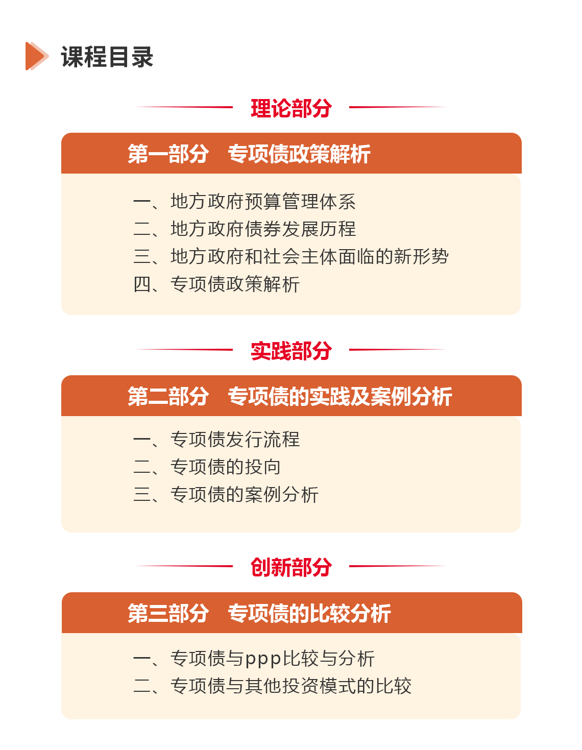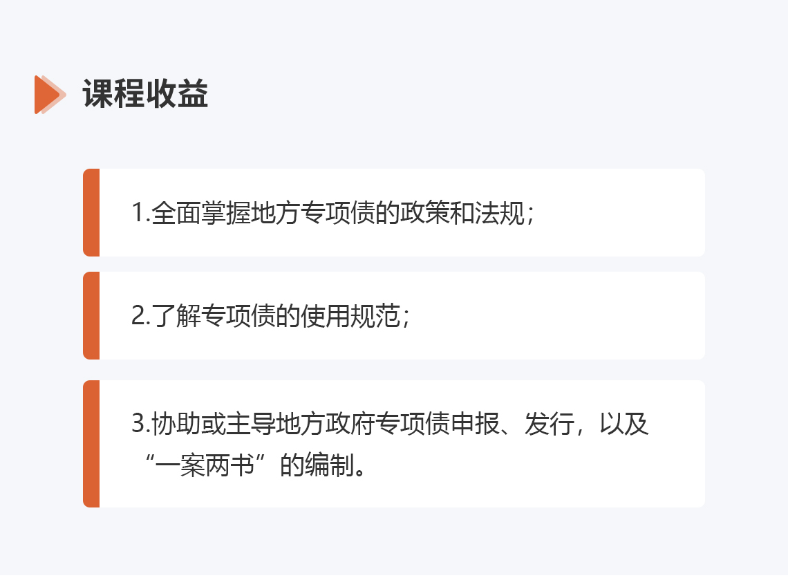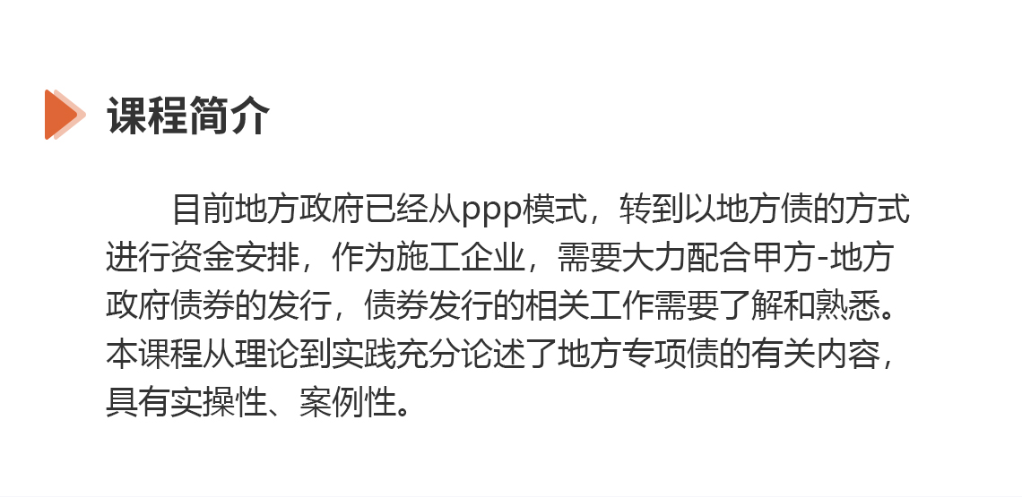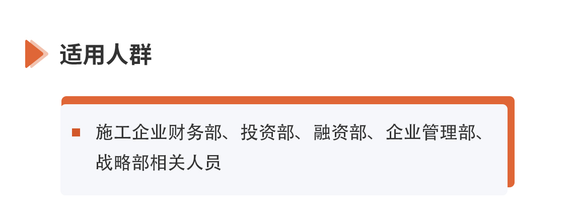 选修人群:政府投融资首席专家、董事长、董事、总经理、财务总监、财务经理、人力总监、人力经理、法务总监、风控总监、市场总监、总经济师、投资总监、项目总监、项目经理